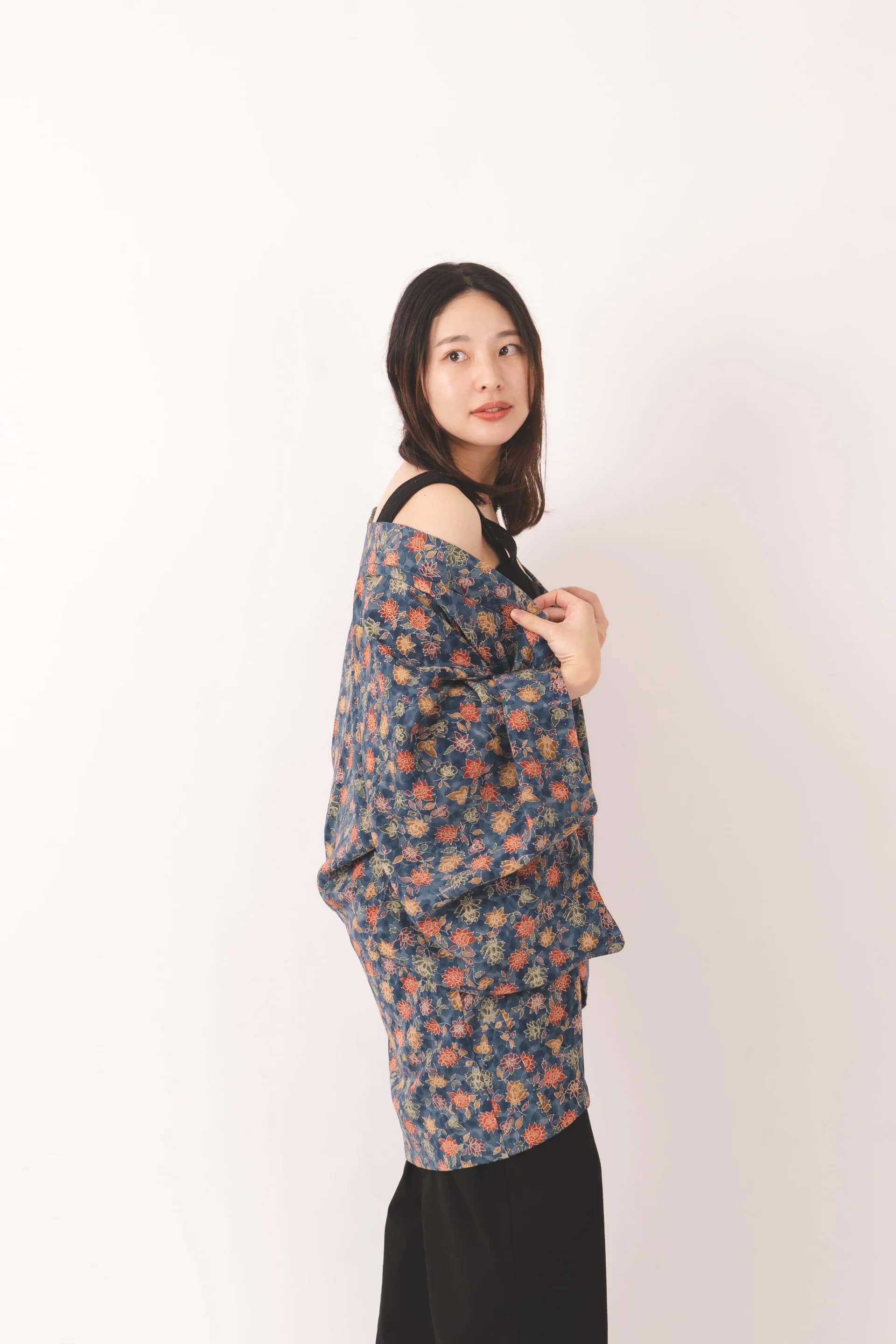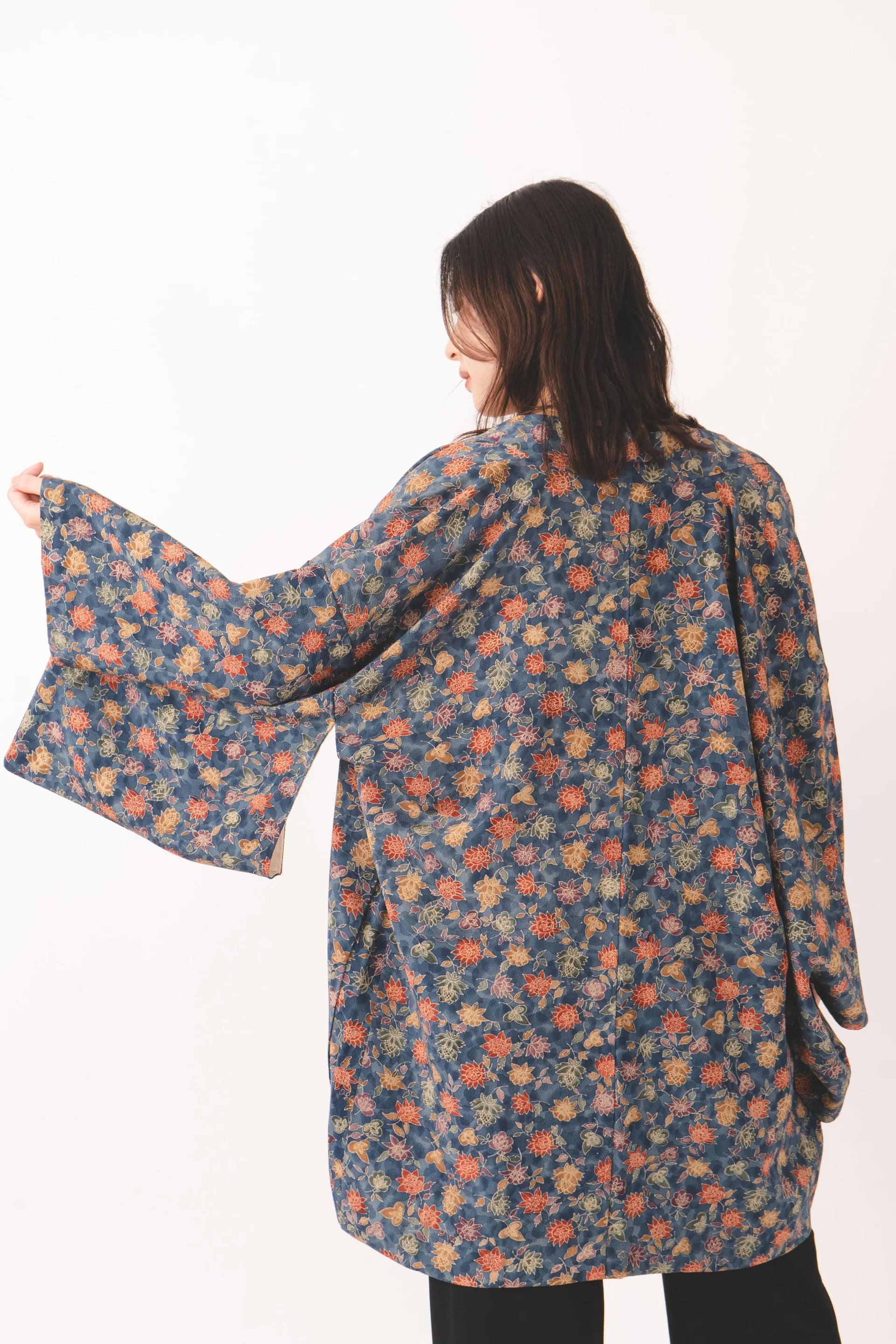 The detailed flowers bring depth and elegance to the design, making this haori a captivating piece for any wardrobe.